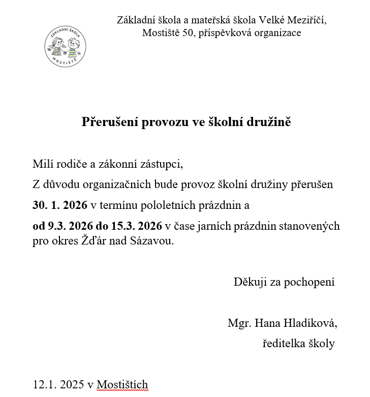 Přerušení provozu ŠD